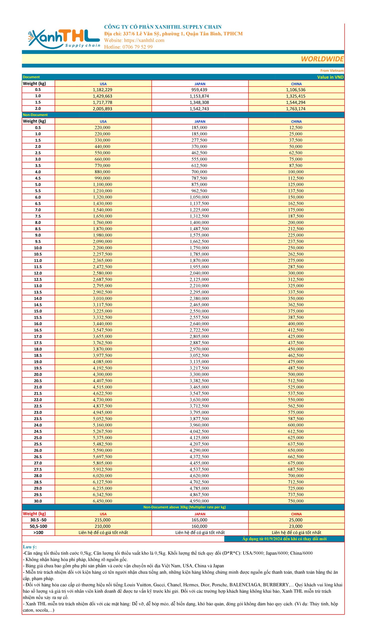 Xin trân trọng giới thiệu bảng báo giá dịch vụ của Xanh THL. Bảng báo giá này mang tính chất tham khảo nhằm giúp Quý khách có cái nhìn tổng quan về các dịch vụ vận chuyển cạnh tranh nhất mà chúng tôi cung cấp. Để nhận được thông tin chi tiết và báo giá chính xác nhất, vui lòng liên hệ hotline: 0706 79 52 99. Đội ngũ tư vấn viên của chúng tôi luôn sẵn sàng hỗ trợ và giải đáp mọi thắc mắc của Quý khách.